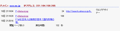 そのIPによる滞在時間を表示します。ただし、最後のページを何秒閲覧したかは測定できません。
