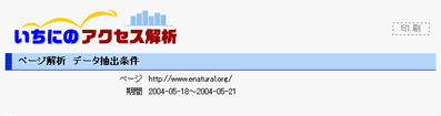 ページ解析でもサイト解析と同様のデータ抽出条件と全体統計が表示されます。