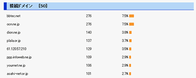 ドメインはサブドメインを省略した形としております。例えば「nagoya01.ocn.co.jp」の場合は「ocn.co.jp」となります。見出しの[50]と表示してあるのは表示件数です。