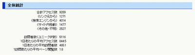 サイト解析の最初に必ず表示されるのが「データ抽出条件」と「全体統計」です。